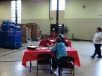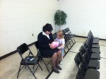 After clients for the flood relief have registered with the welcome desk, they are escorted over to the waiting area. At the waiting area, our pastoral care officers were on-hand to offer comfort and guidance to the individuals and families. Lt. Valentina Cantu (pictured right) is spending time playing with a child of a disaster victim and is herself a disaster victim. Lt. Cantu spent several minutes playing with the girl and reading to her. After a few moments at the provided kid’s activity station, the little girl proudly walked around the corps gym showing everyone her sticker tatoos. It was one way to bring a small amount of joy into a person’s life.