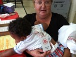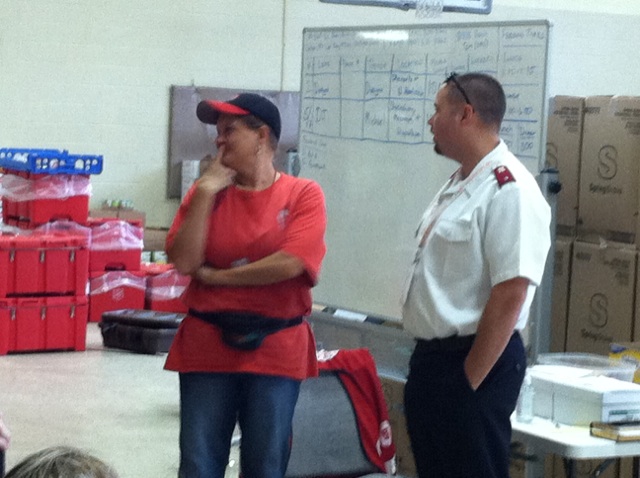 One of the more overlooked resources that are necessary for action within a disaster response is the volunteer. Pam from Vidalia, GA is pictured here receiving her new “badge” from the previous Operations Chief, Lt. Jason Burns. Pam has bee heavily-involved in the work of The Salvation Army in disaster back at home.
