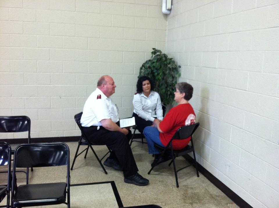 This process is available to all levels of a disaster response team. From Incident Commanders to canteen employees, The Salvation Army sees the need to allow people the chance to share their experiences and receive prayer and a blessing.
